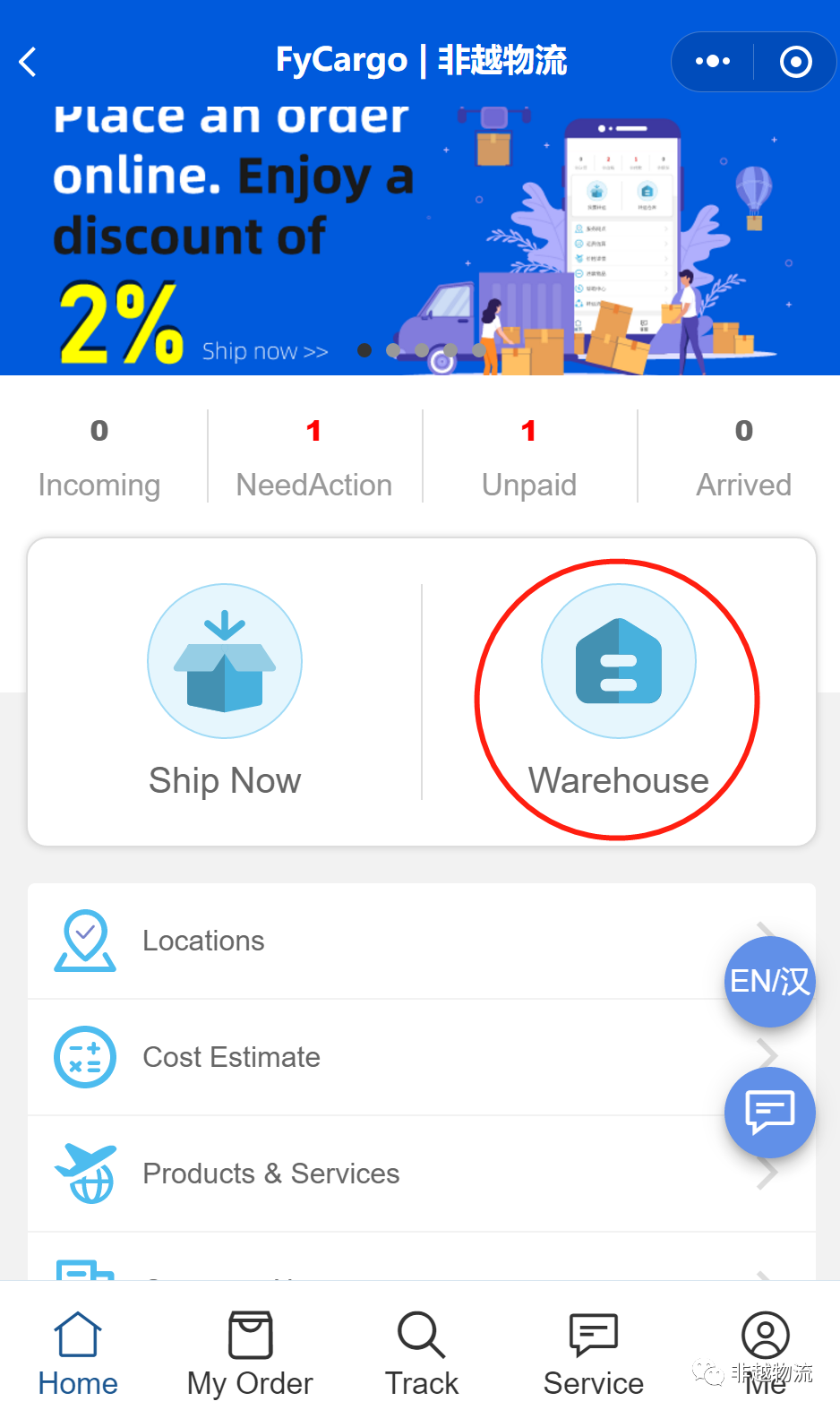 2. Please enter the home page of the website and click "my parcels " - view fycago "warehouse address" to view the corresponding address with [ Customer ID]